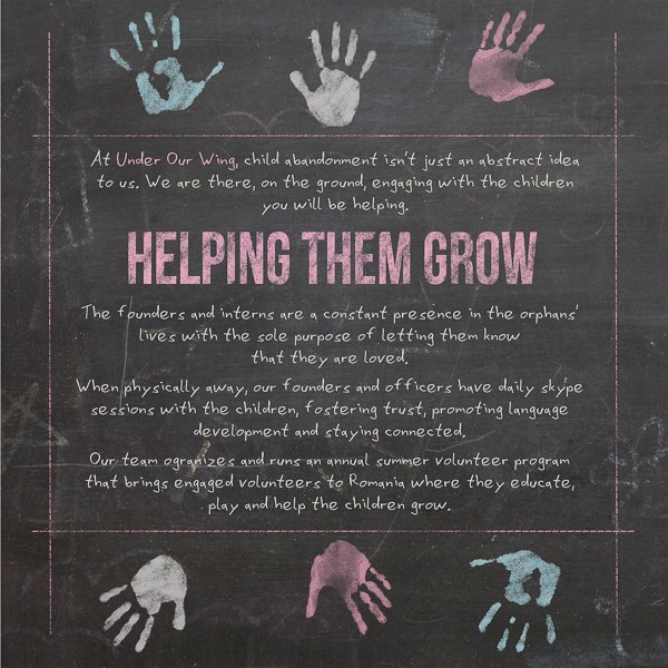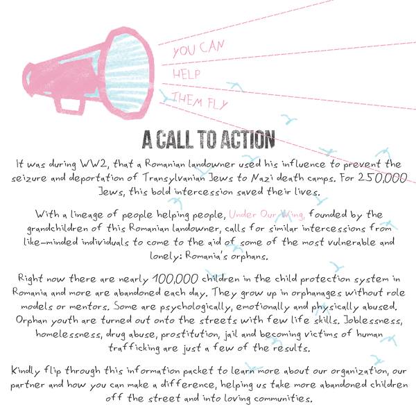 Under Our Wing is a non-profit organization that fights child abandonment and neglect in Romania now, and worldwide soon.